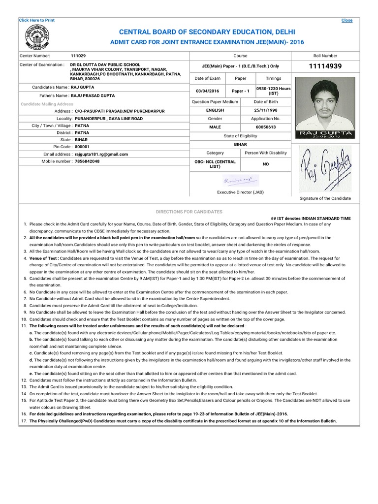 Jee Main Admit Card Test Assessment - Of india having the liberty and right to take their own decision all the education programmes run by the board is board's own autonomous education programme.