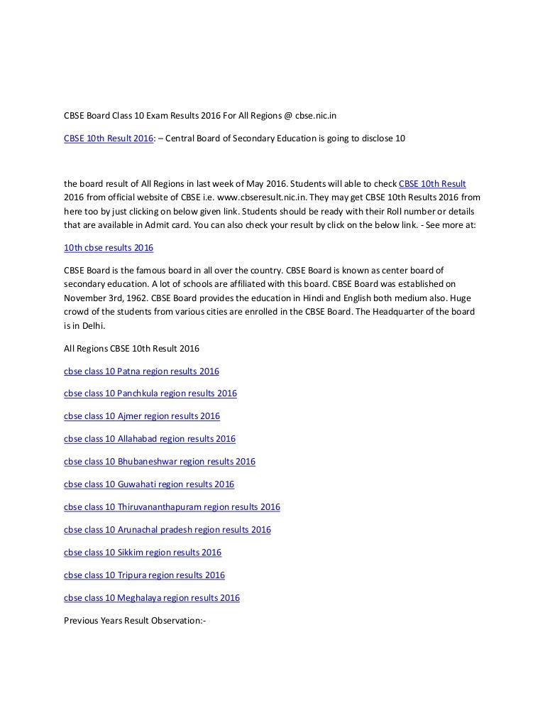 Cbse 10th Result 2016 - Central board of secondary education, delhi.