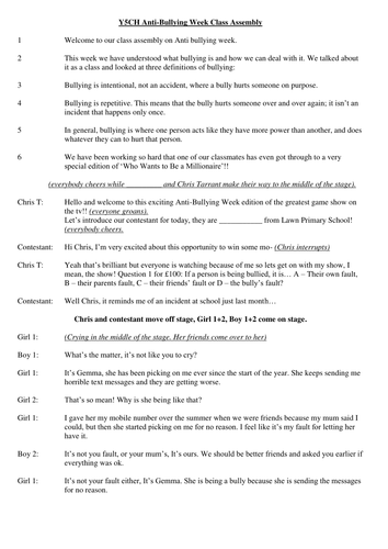 Anti Bullying Week Class Assembly Teaching Resources - Good morning respected teachers and dear students.