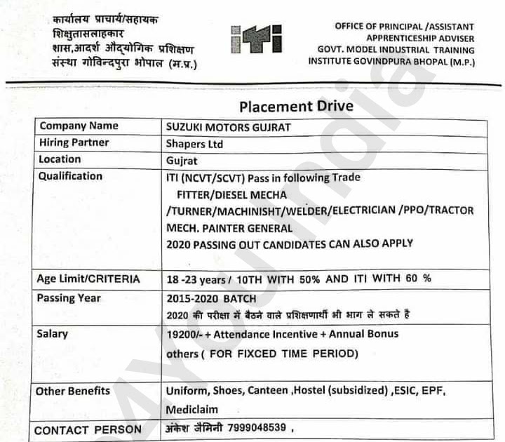 Iti Job Campus Suzuki Motors - Govindpura industries association (gia) came into existence in 50 year ago and gia is the oldest industry association of state of madhya pradesh.