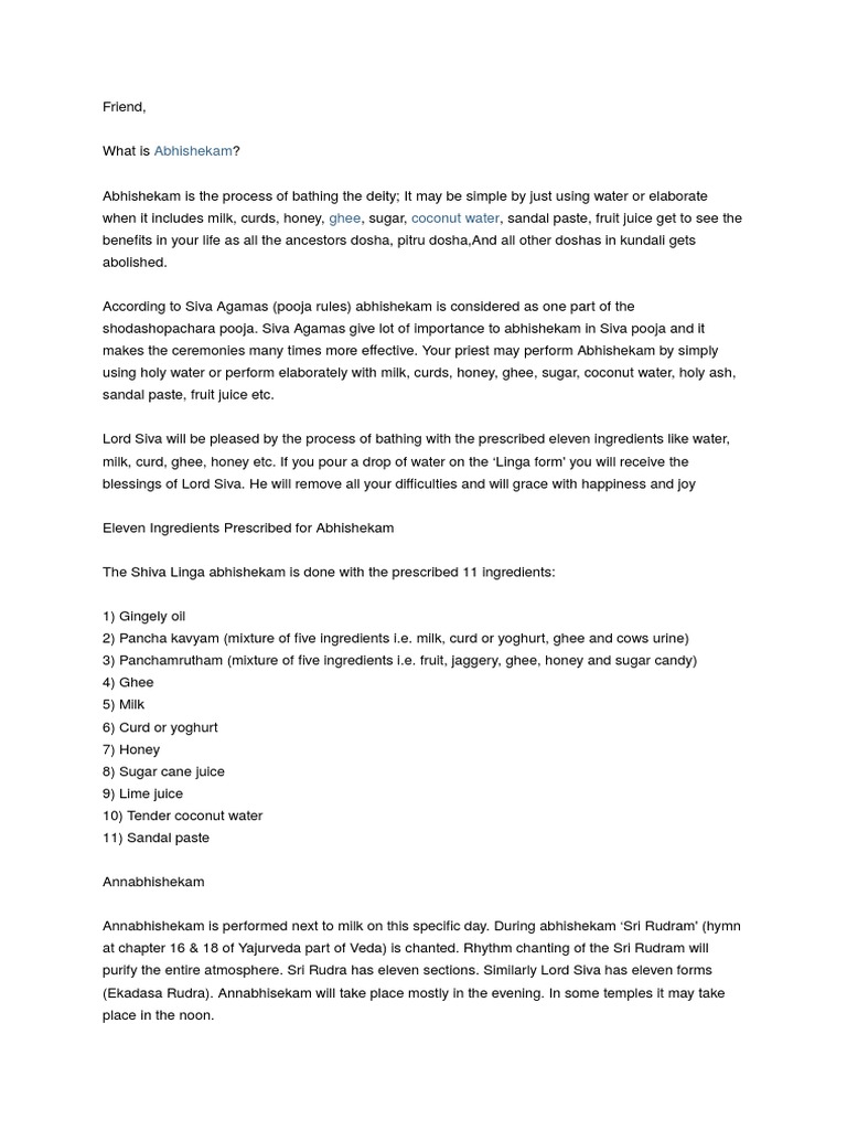 What Are Things Used In Shiva Abhishekam Its Effects What Are Spiritual Significance Of Various Items Used In Shiva Abhishekam Its Effects What Is The Order Of Abhishekam For Lord - Shiva abhishekam is usually performed to a lingam representing his manifestation as a creator of good (by destroying evil).