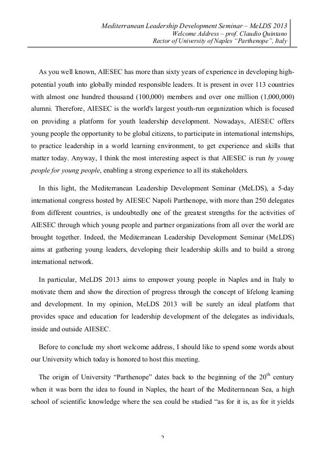 Welcome Address Rector Quintano Aiesec Me Lds2013 - First i'd like to welcome you all and thank everyone for coming, especially at such short notice.