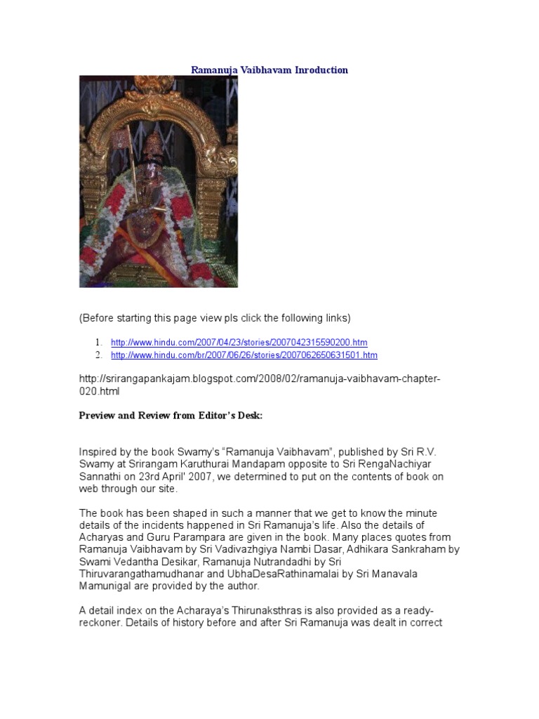 Ramanuja Vaibhavam Vaishnavism Theistic Indian Philosophy - Ramanujar's body is kept preserved in srirangam for 800 years.